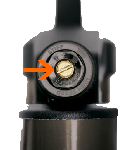 Регулировка характеристик хода сжатия при низкой скорости осуществляется с использованием отвёртки с плоской рабочей частью, которая вставляется в центр регулировочного элемента.