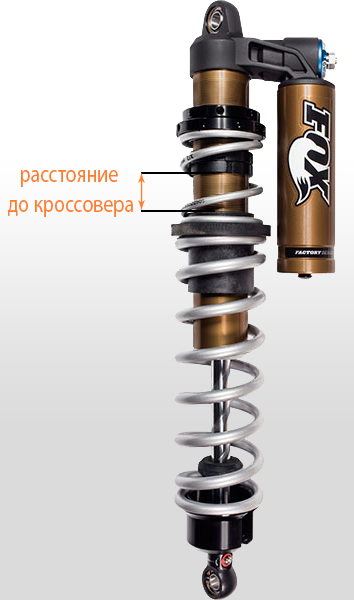 Измерять высоту нужно между теми плоскостями на кроссоверах и на муфте, которые в результате соприкоснутся друг с другом. Если амортизатор стоит на технике, то это расстояние между нижней точкой нижнего кроссовера и крайней верхней точкой муфты, соединяющей две пружины. Именно эти плоскости и столкнутся друг с другом на 55% хода. Необходимо выставить нужное расстояние и обязательно не забыть зафиксировать кольца кроссовера друг относительно друга.