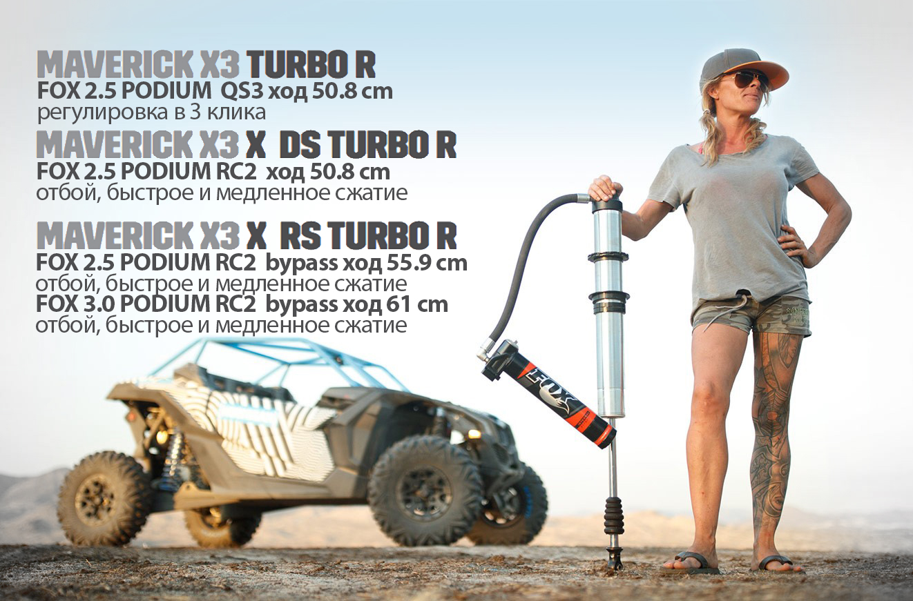 Новый maverick X3 будет иметь три комплектации, и у каждой будут свои амортизаторы FOX: |